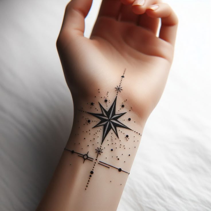 Stars symbolize hope, dreams, and guidance. A cluster of tiny stars on the wrist looks delicate and adds a celestial charm.